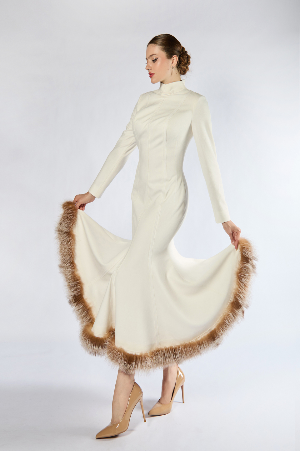 Кружевное платье, изготовленное в уникальной технике ручной сборки. Ворот и подол инкрустирован отдельными фрагментами кружева. Ручная работа.