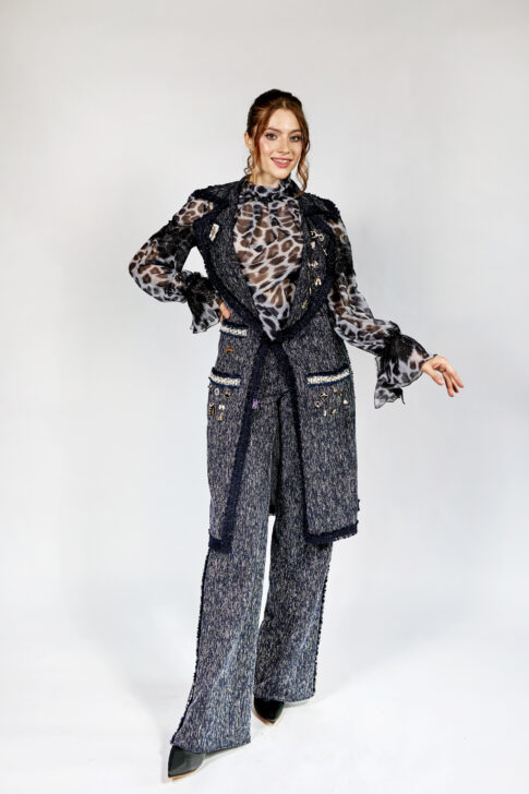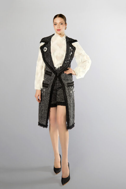 Двойное полотно с прозрачными вставками и бахромой, ручная работа.