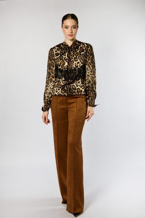 Костюм брючный из трикотажа-замши: тактильно приятная, шелковистая, струящаяся, хорошо держит форму, ткань категории люкс. Отделка манжет мехом чернобурки. Декоративная отделочная строчка, выполненная вручную. Костюм может быть продан по отдельности.