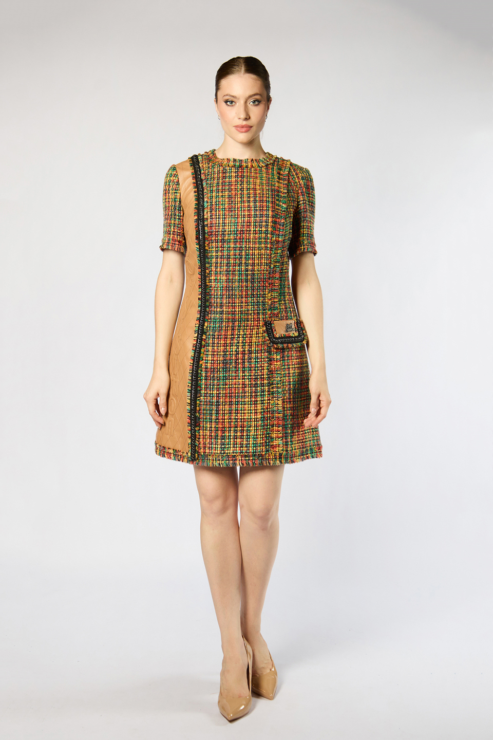 Платье из ткани: двойное полотно с прозрачными вставками и бахромой, ручная работа.