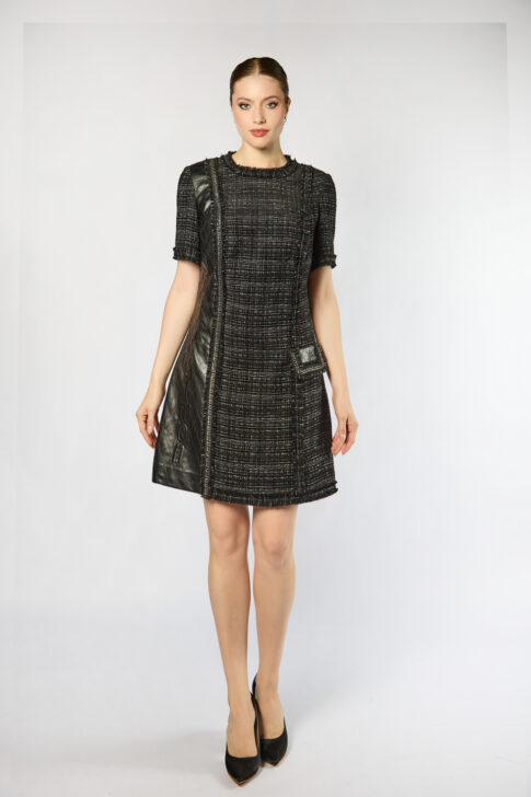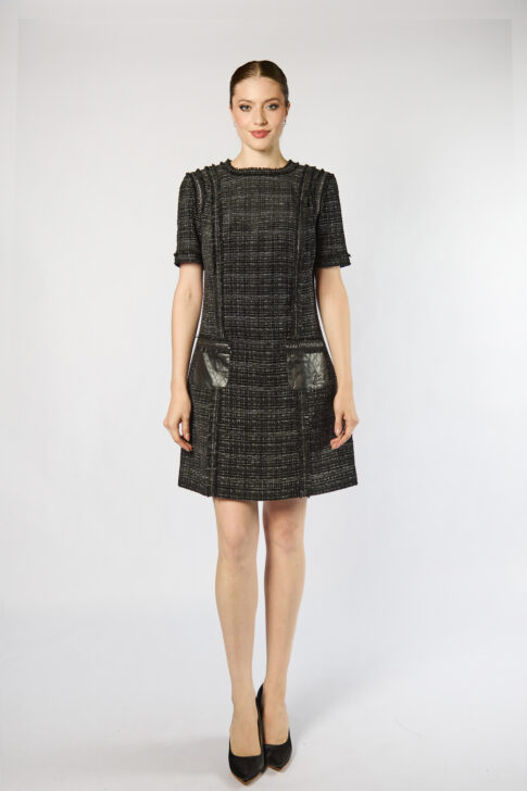 Пальто из бархатного твида на шелковом подкладе. Декор в виде вставки из кошенного трикотажа с логотипом бренда. Вся декоративная тесьма на изделии выполненная вручную.
