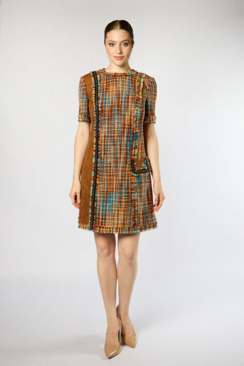 Винтажная ткань. Пальто из цветного твида на шелковом подкладе. Декор: вставка из замши с логотипом бренда. Вся декоративная тесьма на изделии выполненная вручную.