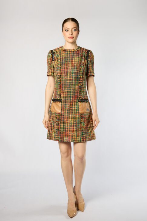Винтажная ткань. Пальто из цветного твида на шелковом подкладе. Декор: вставка из кошенного трикотажа с логотипом бренда. Вся декоративная тесьма на изделии выполненная вручную.