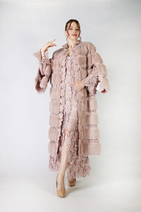 Кружевное платье, изготовленное в уникальной технике ручной сборки. Ворот и подол инкрустирован отдельными фрагментами кружева. Ручная работа.